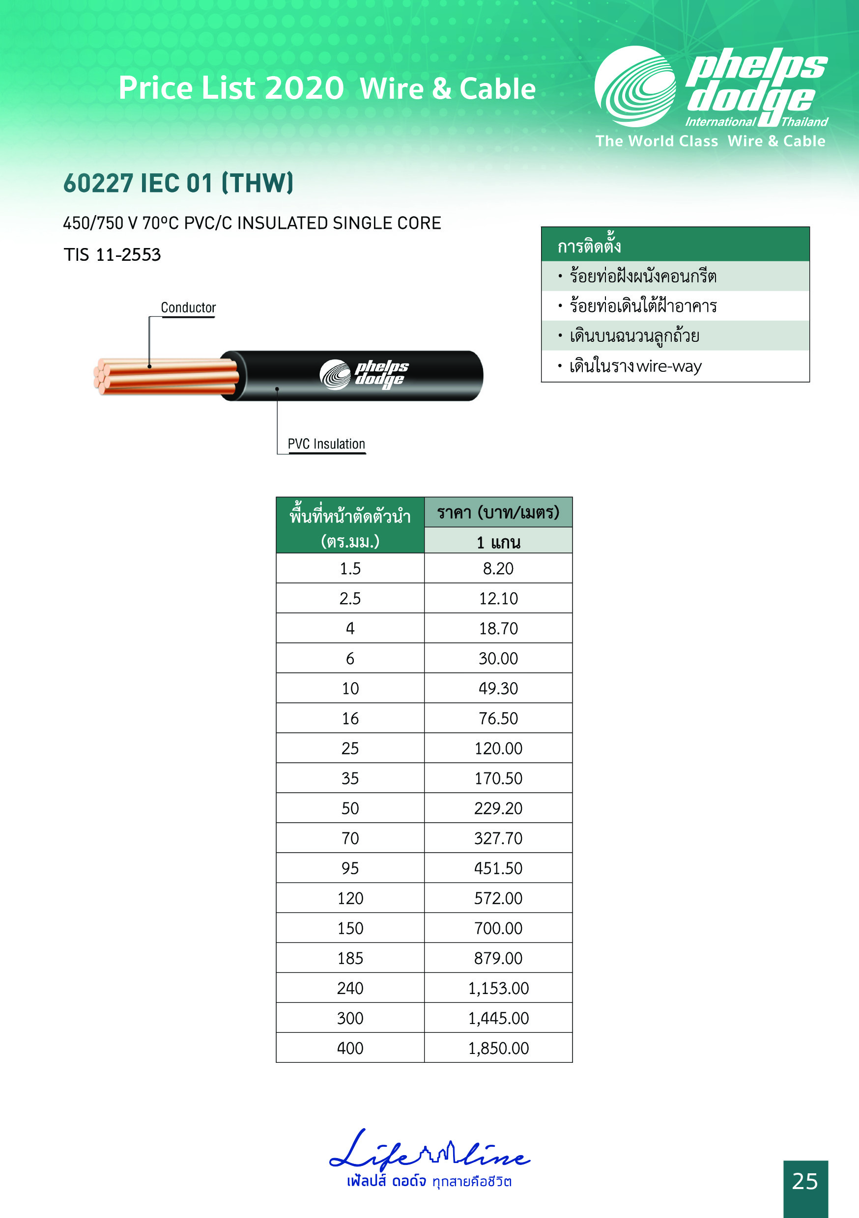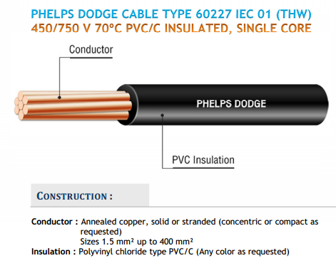 ชื่อสินค้า : สายไฟ THW ยี่ห้อ Phelps Dodge